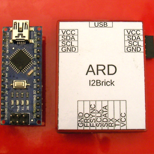 The ARD brick contains an arduino nano board and provides an interface between the PC and the other I2Bricks. The ARD brick has four ports: